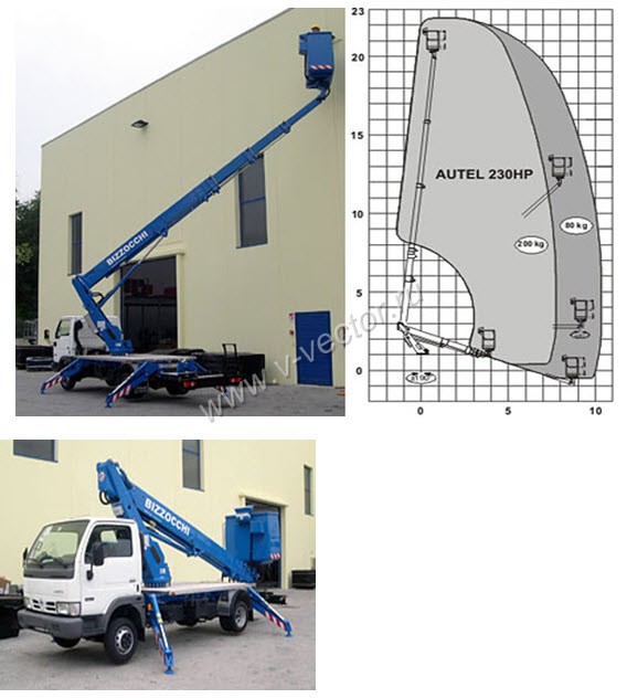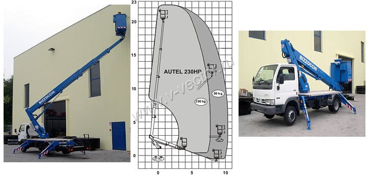Телескопический автогидроподъемник AUTEL 230HP предлагает наибольшую рабочую высоту подъема людей с инструментом, а именно: до 23 м, вместе с тем он сохраняет преимущества всей серии AUTEL: компактные размеры и возможность установки на шасси полной массы 3,5 т. Пропорциональные рычаги управления, компактное расположение гидравлических и электрических проводов и кабелей внутри стрелы – все это является несомненными преимуществами всей серии AUTEL HP по отношению к аналогам на рынке подъемной техники.